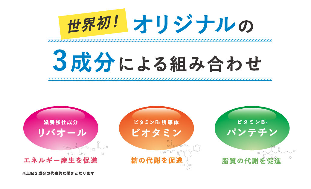 リゲインといえば、ドリンクタイプを思い浮かべるかもしれませんが、この『リゲイントリプルフォース』は錠剤。ドリンクからパワーアップした超簡単に始められる「疲労回復法」なんです。