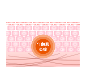 [5]年齢肌とは、加齢に伴い、シミ・シワ・乾燥・肌荒れなどの肌トラブルが現れやすくなった肌のことであり、年齢肌炎症とは、肌トラブルの原因の1つとなる(日常的に起こっている)微弱な炎症状態のこと。