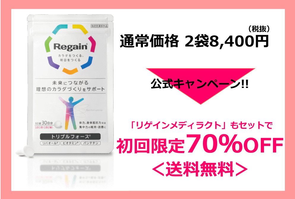 『リゲイントリプルフォース』は、1日1回2錠飲むだけの超・簡単な「疲労回復法」。