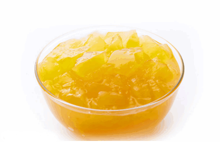 歯を押し返すくらい弾力のあるゼリーで、とってもジューシーなマンゴー味!