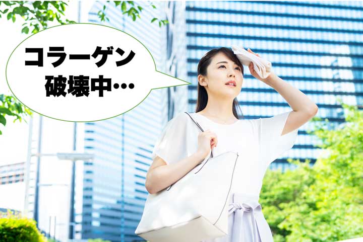 おまけに、暑くなってくると紫外線が強くなって、普段よりもお肌のコラーゲンが破壊されやすくなるらしいんです!