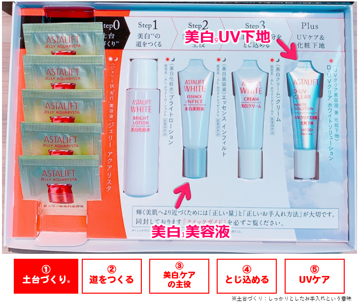 紫外線が多いこの時期に嬉しい美白1ケアに加えて、大人気の先行美容液「ジェリー」もついてくる超豪華トライアルキットが、