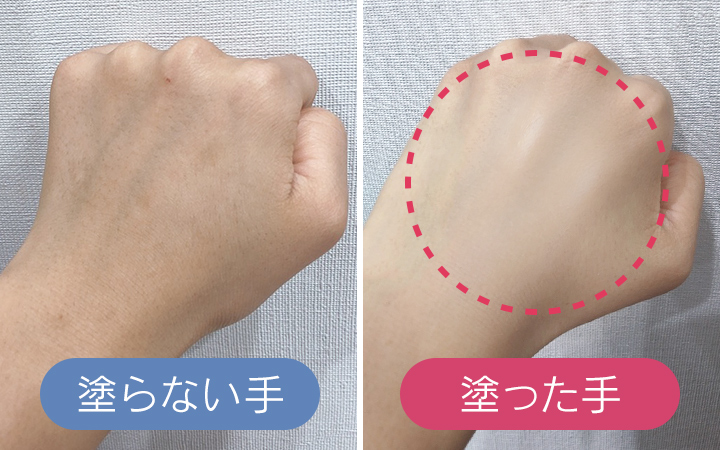 手で実験してもこの通り!まるでもともと美肌だったみたい!