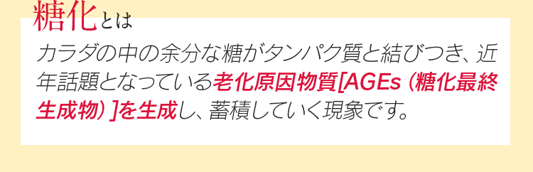 糖化によって生み出されるAGEsは、美容的にも良くない影響を及ぼすんです!