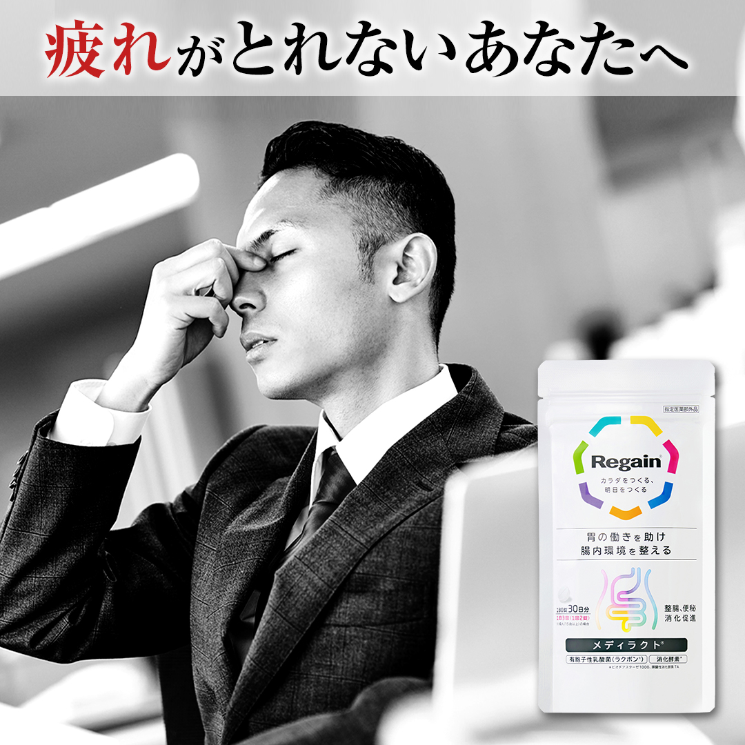 日々の疲れにアプローチしてくれるリゲインですが、今なら胃もたれや便秘のお悩みに効く錠剤「リゲイン メディラクト」もセットになって、2ヶ月分が通常価格12,600円のところ、初回限定70%オフの3780円でお試しすることが可能です。