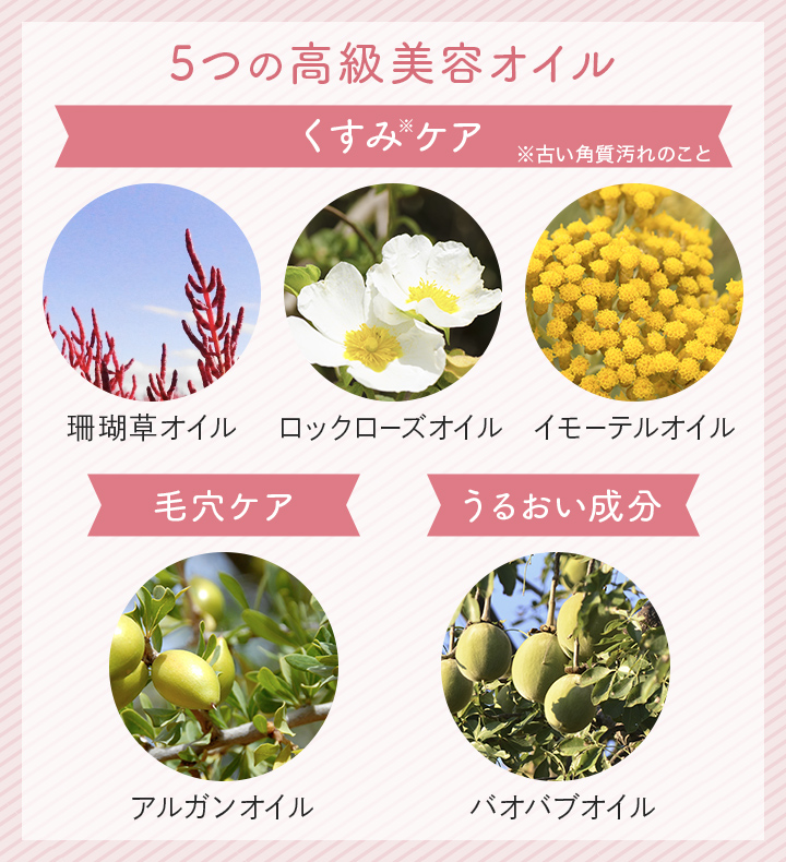 美容液や、高級エステでも使われている、5つの高級美容オイルが贅沢に配合!