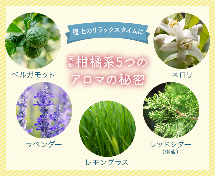 オイルを乗せた時のフワッと香る優しい柑橘系のアロマの香りで、1日の終わりのリラックスタイムを過ごせますよ。