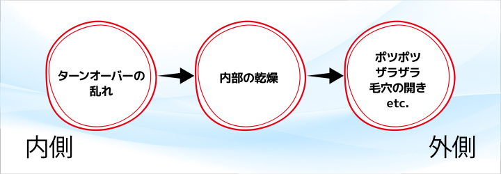 その肌内部の要因こそが「ターンオーバー」=「肌が生まれ変わるサイクル」なんです。